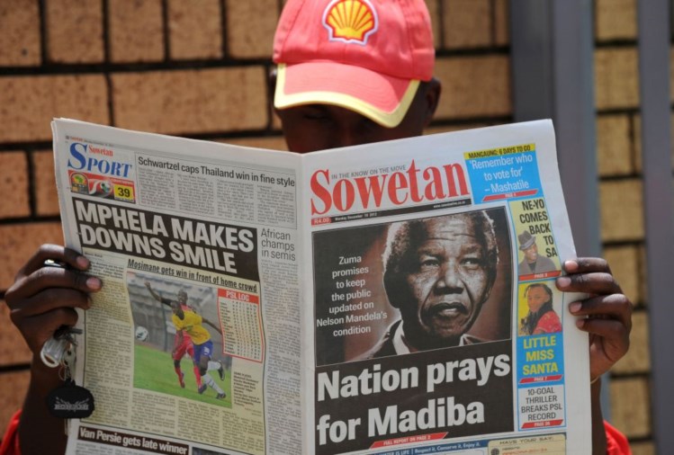 Os media sul-africanos seguem de perto as informações sobre o estado de saúde de Mandela, que desde a final do Mundial de Futebol de 2010 não aparece em público. Isso não significa que tenha desaparecido dos olhos dos sul-fricanos: com alguma regularidade, a televisão nacional transmite algumas imagens suas, gravadas em Qunu, onde nasceu e para onde regressou nos últimos meses.