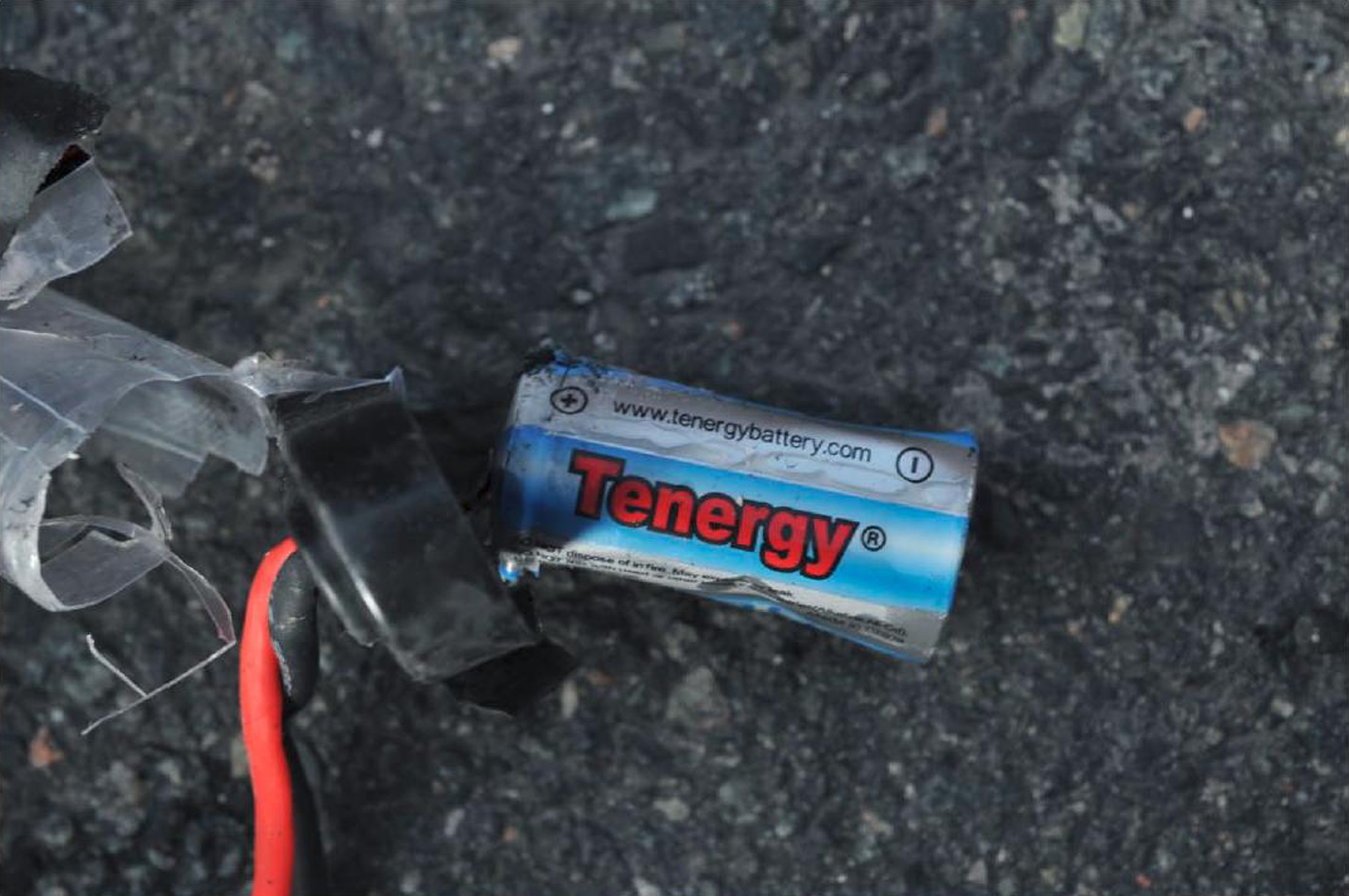 Fotografia tirada por investigadores mostram o que resta de uma das bombas artesanais