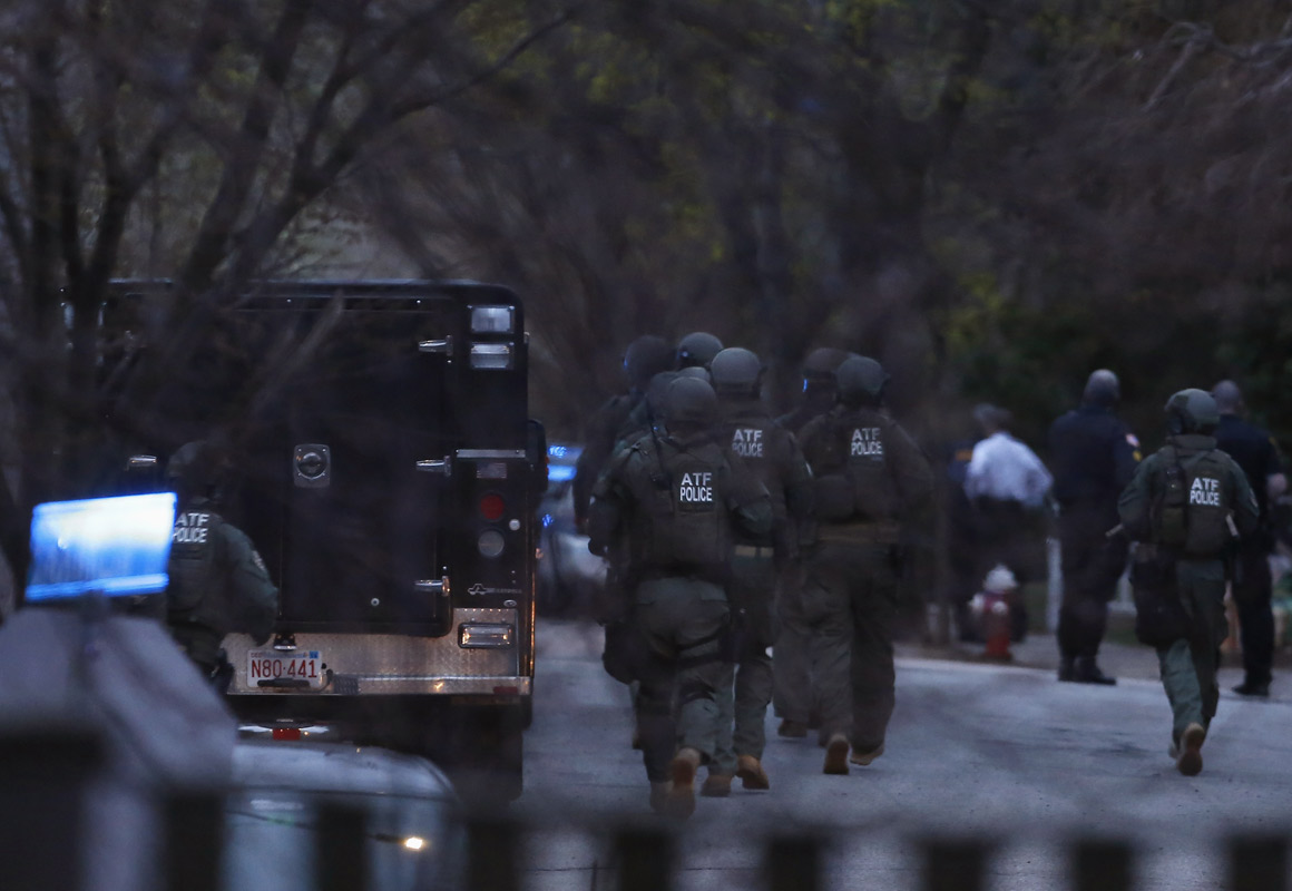 O aviso que fora dado durante a madrugada aos residentes da área de Boston para se manterem em casa com as portas trancadas foi levantado às 18h (23h em Portugal) e os habitantes de Watertown começavam a sair à rua quando, menos de uma hora depois, uma rajada de tiros foi ouvida junto da área que a polícia tinha bloqueado durante todo o dia. As televisões, que faziam os seus directos a partir da zona, notaram um súbito aumento de actividade policial.