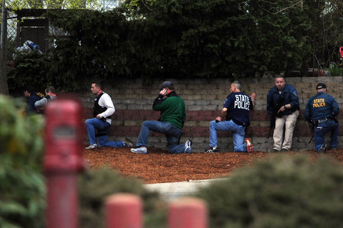 O aviso que fora dado durante a madrugada aos residentes da área de Boston para se manterem em casa com as portas trancadas foi levantado às 18h (23h em Portugal) e os habitantes de Watertown começavam a sair à rua quando, menos de uma hora depois, uma rajada de tiros foi ouvida junto da área que a polícia tinha bloqueado durante todo o dia. As televisões, que faziam os seus directos a partir da zona, notaram um súbito aumento de actividade policial.
