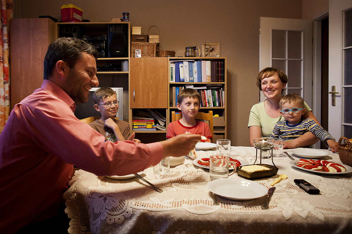 Passa pouco das 19h e ainda se sente no ar o calor do início de Verão solarengo que atingiu Varsóvia. Os Polit sentam-se à mesa para a última refeição de um dia que começou bem cedo. Antes de começarem a comer, Pawel, Emilia e os três filhos levantam-se em oração. São católicos, como quase 90% dos polacos. Quando terminarem a salada de queijo mozarela e tomate, vão começar a preparar-se para dormir. É preciso descansar cedo porque no dia seguinte, como de costume, a rotina familiar começa às 6h da manhã. Uma hora e meia depois, os dois rapazes mais velhos da família estarão a caminho de mais um dia de aulas. “A escola é boa e nota-se que os professores estão empenhados. Mas se calhar também temos sorte, porque os miúdos gostam de estudar”, conta Emília, 38 anos.