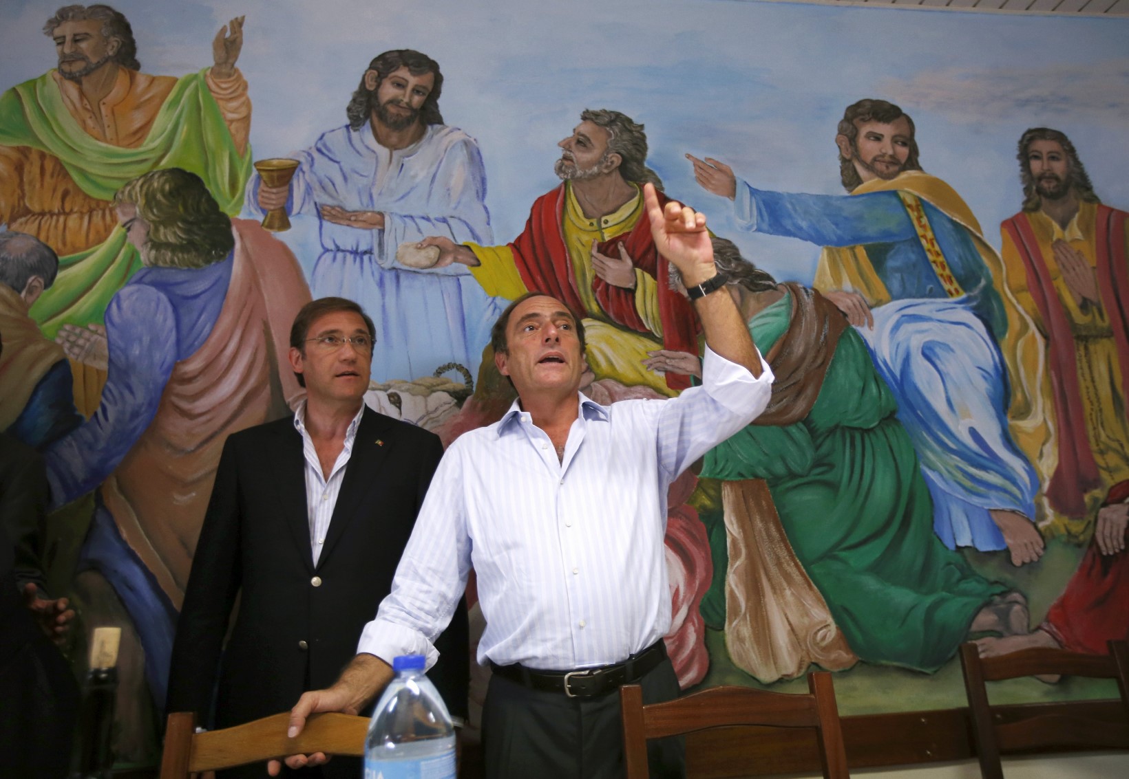 O primeiro gesto de ambos na varanda com vista para a serra: Passos tira o casaco e arregaça as mangas, Portas acende um cigarro. Marco António Costa, que não esteve na rua, recebe-os. Os restantes dirigentes, e membros do Governo, ficam no lobby. A coligação que une a direita portuguesa nestas legislativas depende desta “troika” que se reúne, em privado, no hotel. E foi Passos quem, nuns célebres idos de Julho, garantiu que tudo se passaria exactamente assim.