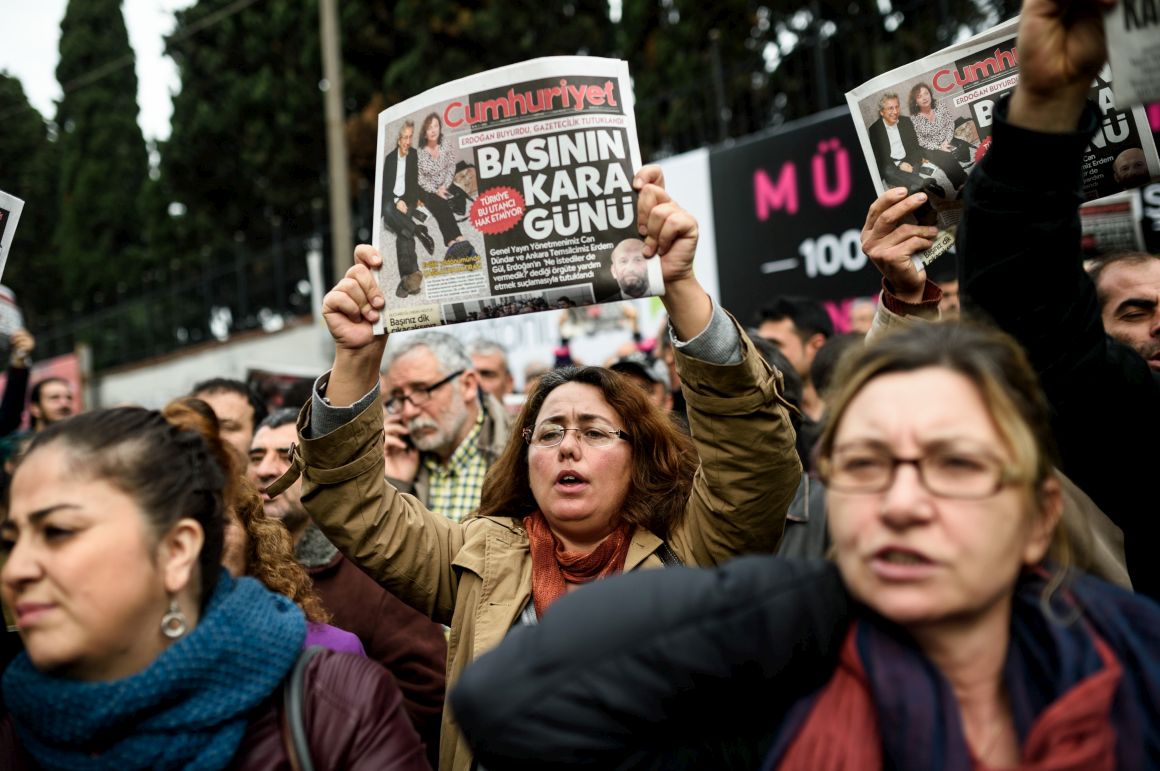 Mas o Cumhuriyet não é o único jornal a ser alvo da fúria de Erdogan. Váriosoutros media, críticos do Governo – e próximos de Gülen – têm sido vítimas de uma enorme repressão. A Turquia nunca esteve em boa posição nos índices de liberdade de imprensa dos Repórteres Sem Fronteiras. Este ano está em 149, entre 180.