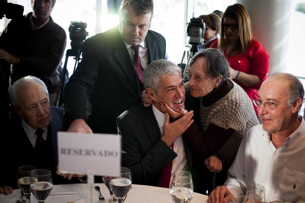 A fila para o almoço avança devagar. Misturam-se rostos conhecidos da política nacional, socialistas - Alberto Costa, Mário Lino, Paulo Campos, Vitalino Canas, o secretário-geral da UGT, Carlos Silva - com os de gente anónima. Teresa Oliveira, reformada de 66 anos, a viver em Lisboa, decidiu participar no almoço organizado pelo movimento cívico “José Sócrates Sempre”. “Ele foi o nosso melhor primeiro-ministro. Foi um reformista. Melhorou tudo, até o meu estado de alma”, diz. E acrescenta: “Não houve nenhum como ele.” Ao lado, Fátima Ferraz, que se deslocou do Porto, concorda: “As reformas que ele fez pelo país, é preciso coragem. É um indivíduo com visão de futuro. Pelo progresso, que pôs o país à frente”, diz a professora reformada de 65 anos.