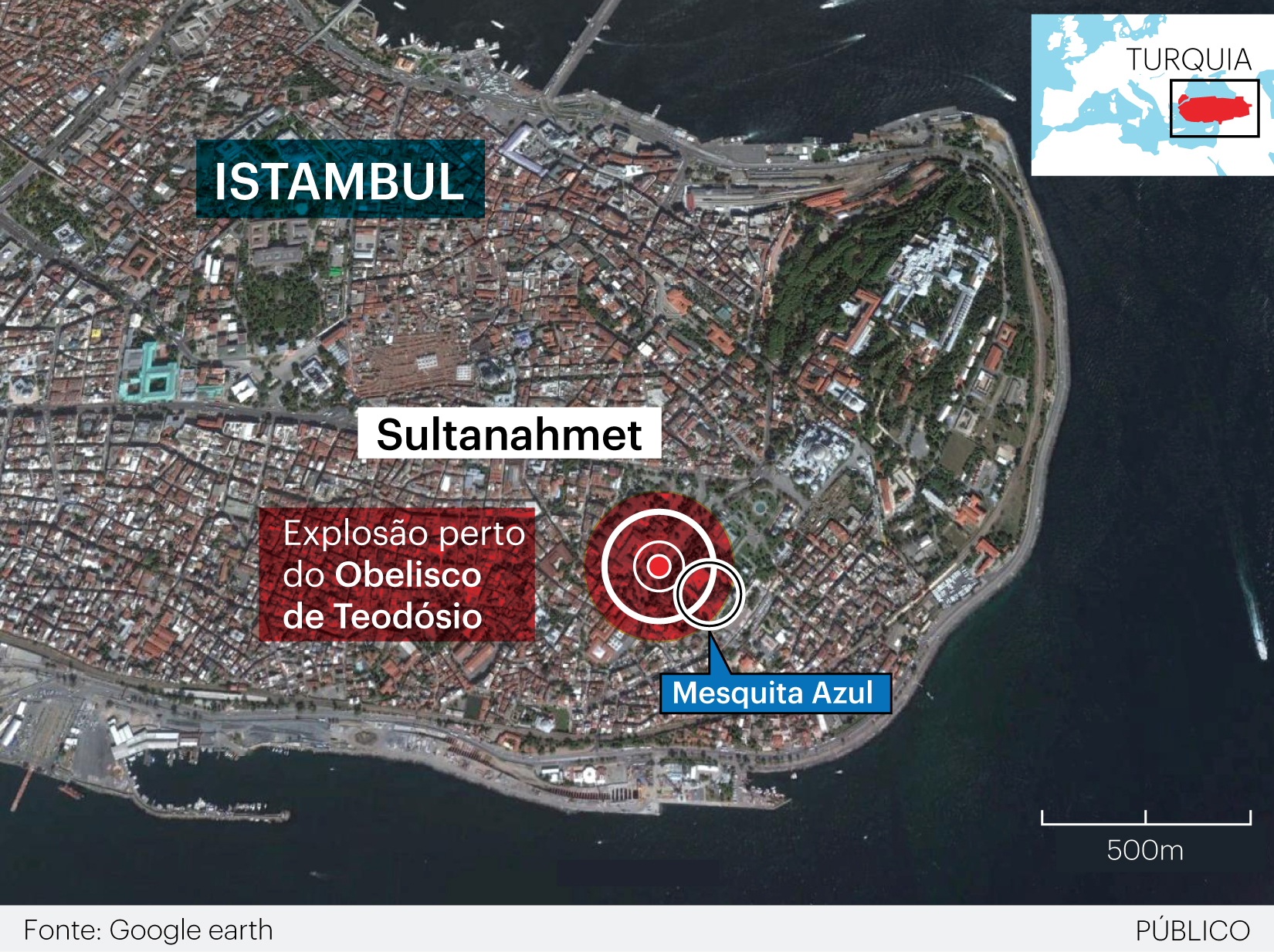 O homem fez-se explodir perto de um grupo de turistas que visitavam o bairro histórico de Sultanahmet. É um dos lugares mais movimentados e conhecidos em Istambul, embora terça-feira não tenha sido um dia muito concorrido, segundo disseram comerciantes e moradores. É em Sultanahmet que se encontram a grande Mesquita Azul e outras importantes heranças dos impérios Romano, Bizantino e Otomano.