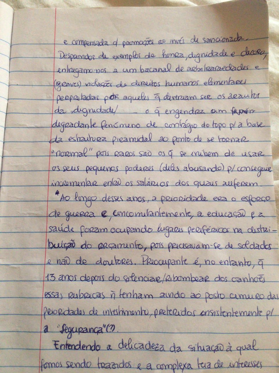 “Ao longo desses anos, a prioridade era o esforço de guerra e, concomitantemente, a educação e a saúde foram ocupando lugares periféricos na distribuição do orçamento, pois precisavam-se de soldados e não de doutores. Preocupante é, no entanto, que 14 anos depois do silenciar/ribombear dos canhões essas rubricas não tenham ainda o posto cimeiro das prioridades de investimento, preteridas consistentemente para a “segurança”(?).
