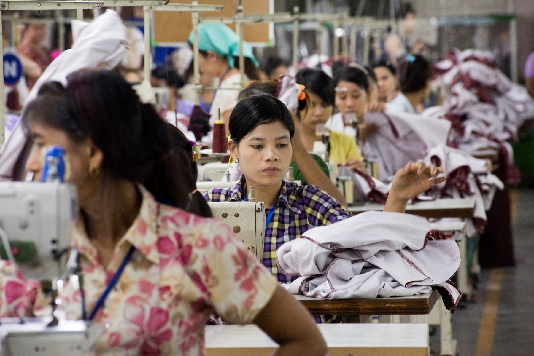 Aye Aye Han, a dona da fábrica, guia uma visita. Mulheres, muito jovens, sentadas umas atrás das outras, formam sete linhas de produção. Nas pequenas mãos, vestidos de manga cavada e saia rodada, que hão-de ter uma etiqueta de marca alemã. As horas extra foram reduzidas de 60 para 48 por mês, passou a haver caixa de primeiros socorros, instalou-se software capaz de medir produtividade e de calcular bónus.