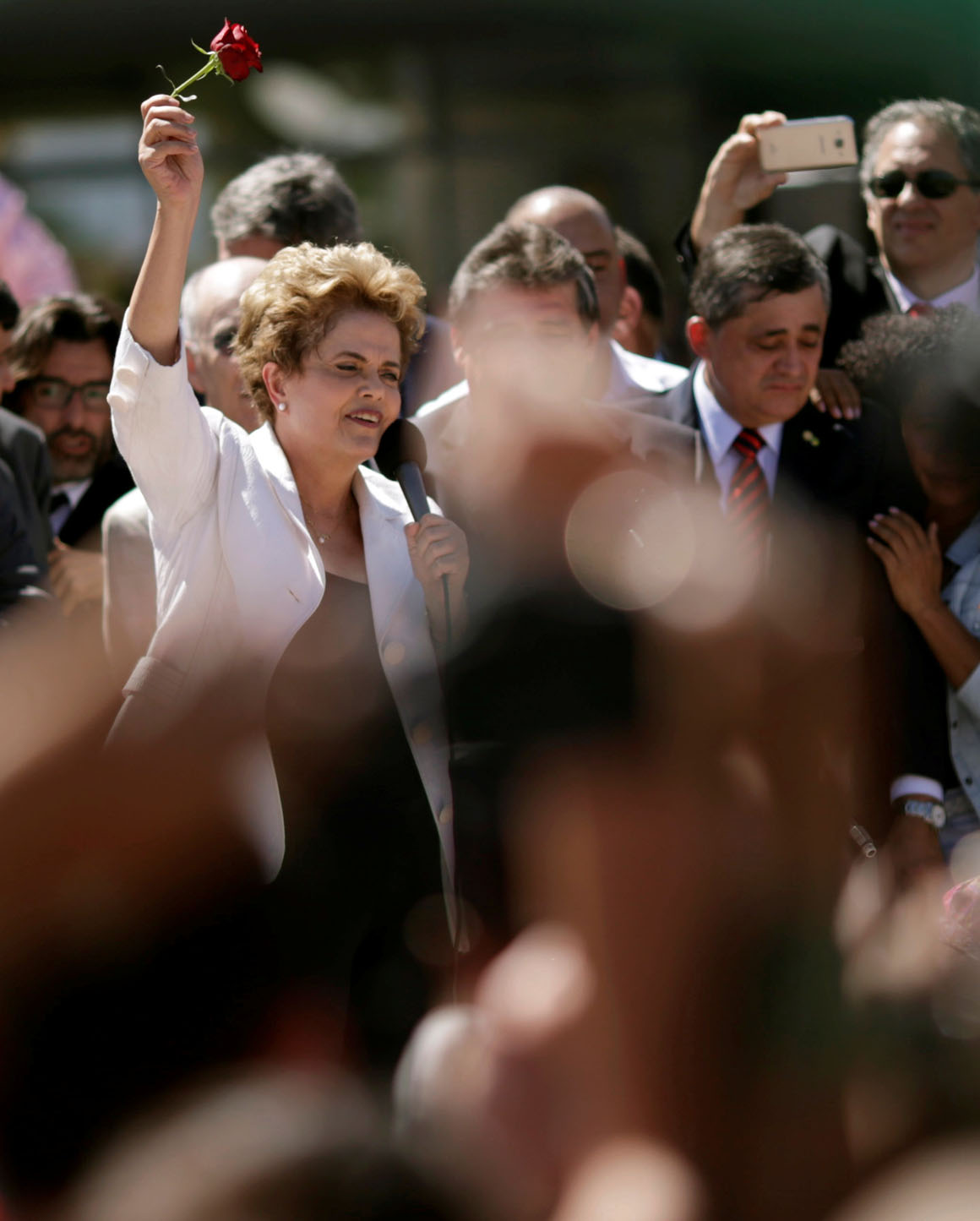 Afastada 17 meses depois de ter sido inaugurado o seu segundo mandato, Dilma é acusada de irresponsabilidade fiscal, por ter decretado aumentos orçamentais sem aprovação do Congresso e ter usado bancos estatais para pagar despesas públicas, mascarando o estado real das contas do Estado. Ela insistiu que essas acções foram legais e necessárias, além de também terem sido executadas pelos seus antecessores. “Jamais em democracia o mandato legítimo de um Presidente eleito pode ser afastado por actos legítimos de gestão orçamental. O Brasil não pode ser o primeiro país a fazer isso”, declarou. Dilma saiu a pé do Palácio do Planalto e foi abraçada por aliados, incluindo um abatido Lula da Silva, o ministro nomeado que nunca chegou a sê-lo. Cerca de três mil pessoas (estimativa da Polícia Federal) concentraram-se frente ao palácio presidencial e Dilma cumprimentou pessoalmente muitas das que estavam na frente, junto às barreiras de segurança, na sua maior parte mulheres. “Hoje para mim é um dia muito triste”, admitiu. “Mas vocês conseguem fazer com que a tristeza diminua”, disse.