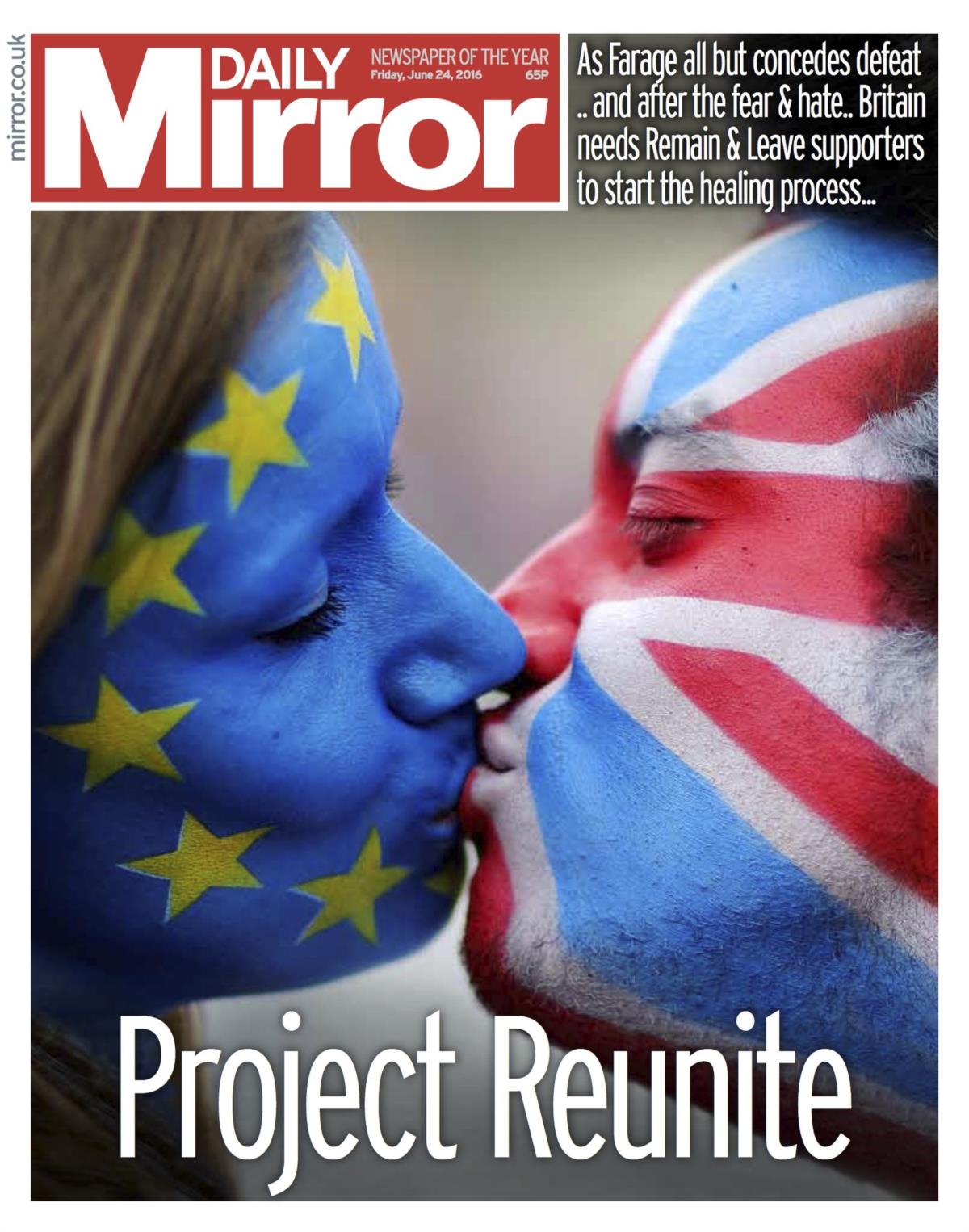 Faltam apenas contar 52 circunscrições e o "Sair da UE" aproxima-se cada vez mais da marca dos mais de 16 milhões de votos necessários para vencer. Nesta altura, tem 52% dos votos contados (14.353.533 votos) contra 48% do "Ficar" (13.409,611 votos). As estações de televisão BBC, ITV e Sky News projectam o "Brexit", considerando irrecuperável a desvantagem dos partidários da permanência na UE.