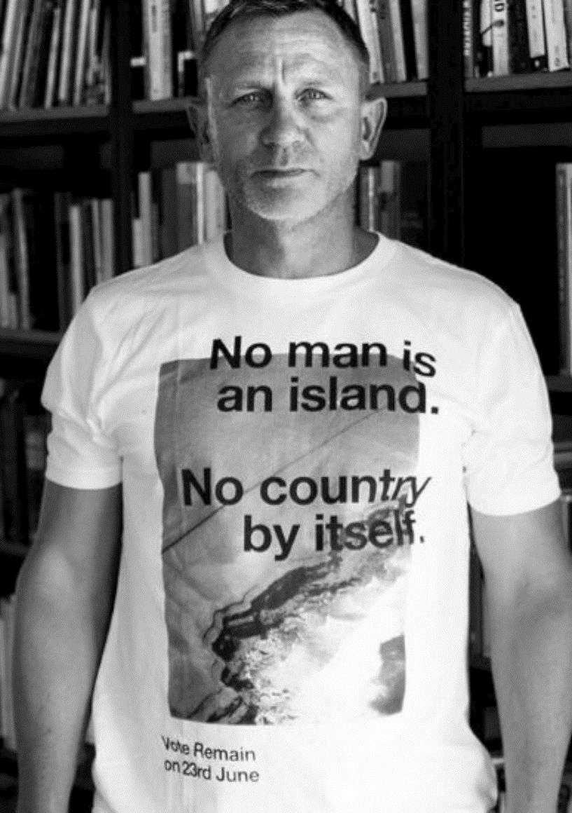 Também o actor Daniel Craig se fez forografar com uma t-shirt onde defende o "ficar" e Matt Damon classificou o "Brexit" como uma loucura.