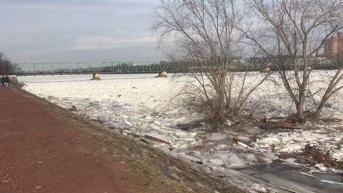 O Delaware, que serve de fronteira aos estados de Pensilvânia e Nova Jérsia, está entupido por causa do gelo e tem gerado receio de cheias. Apesar das possíveis consequências, o fenómeno impressiona.