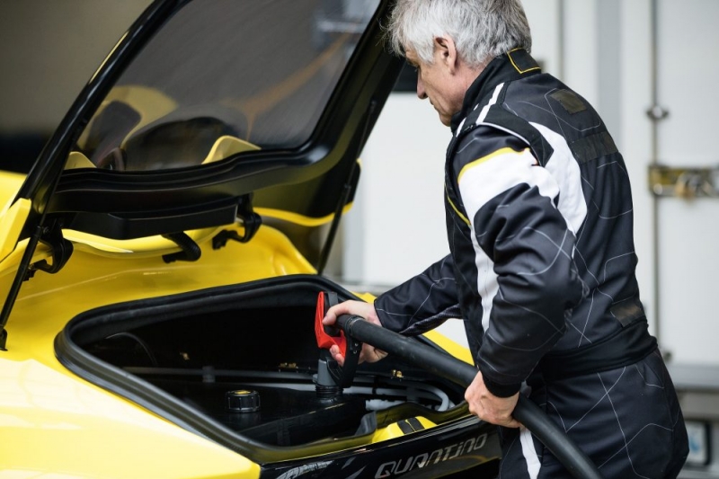 O Quantino tem espaço para quatro pessoas no interior, com um motor de 80 kW (109 cv) para um peso de 1421 kg, o que não o impede de ultrapassar os 100 km/h em apenas cinco segundos. A nanoFlowcell quer começar a produzir este automóvel em série a médio prazo.