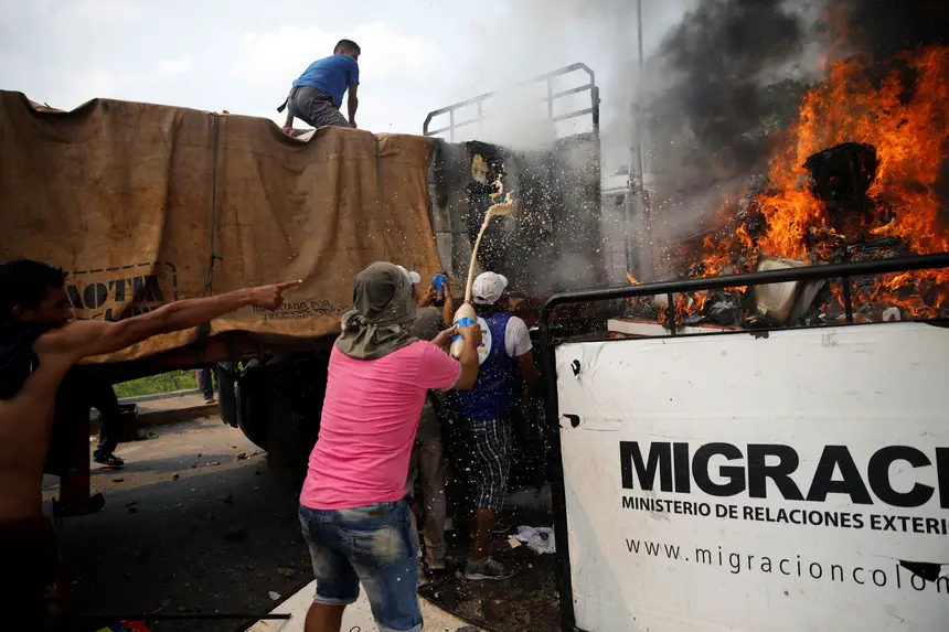 Venezuela: Camiões com ajuda humanitária incendiados na fronteira com a Colômbia