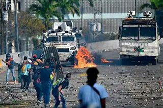 No dia 30, a repressão governamental incluiu veículos militares a investir contra civis, mas não impediu que a oposição mantivesse os protestos contra o Governo no 1º de Maio. Rodeado de centenas de apoiantes nas ruas de Caracas, o presidente interino Juan Guaidó anunciou a libertação do preso político Leopoldo López e a iminente queda de Nicolás Maduro, mas o regime mostrou-se mais sólido do que muitos previamFOTOS FEDERICO PARRA/GETTY IMAGES E MATIAS DELACROIX/GETTY IMAGES