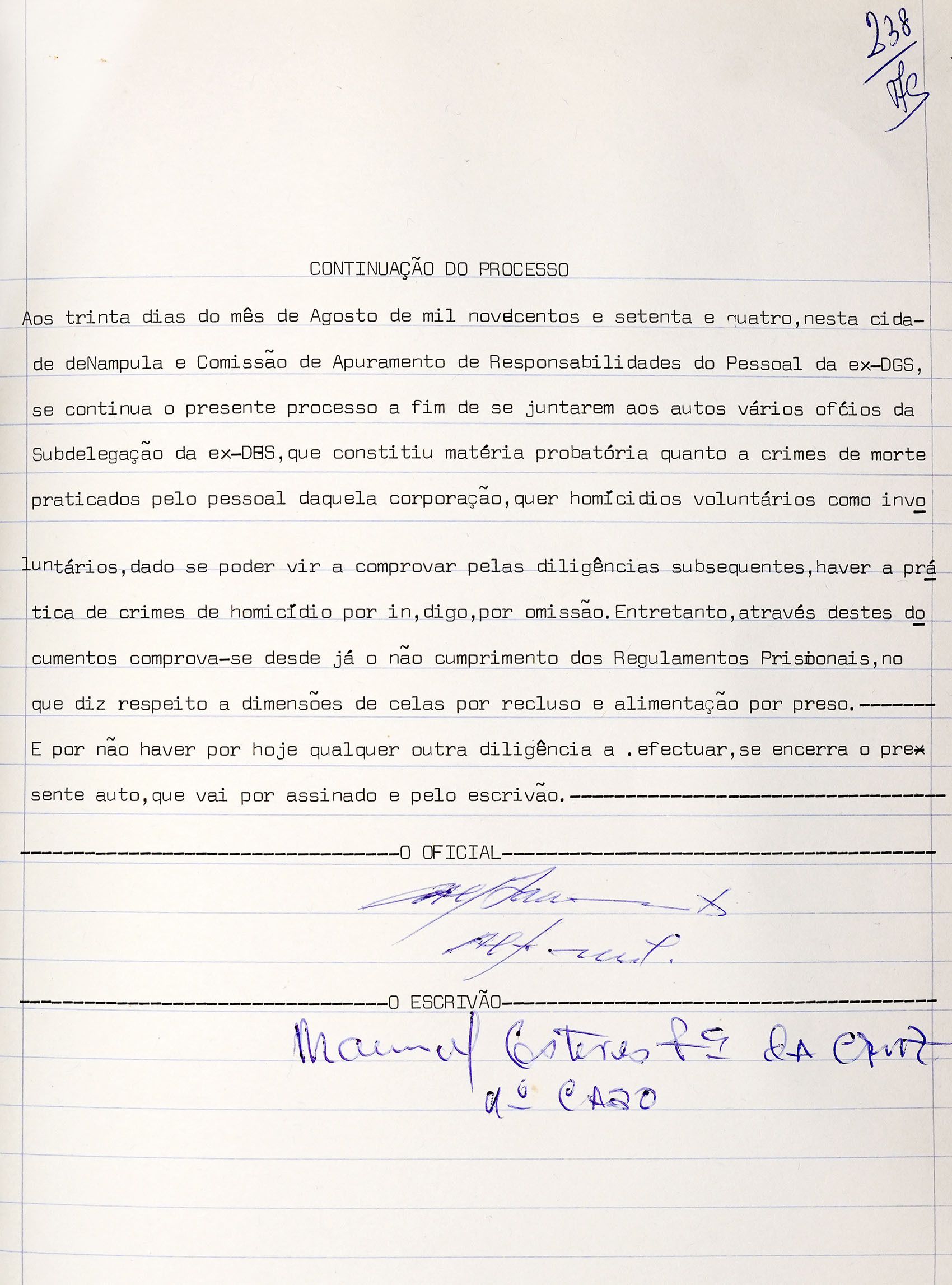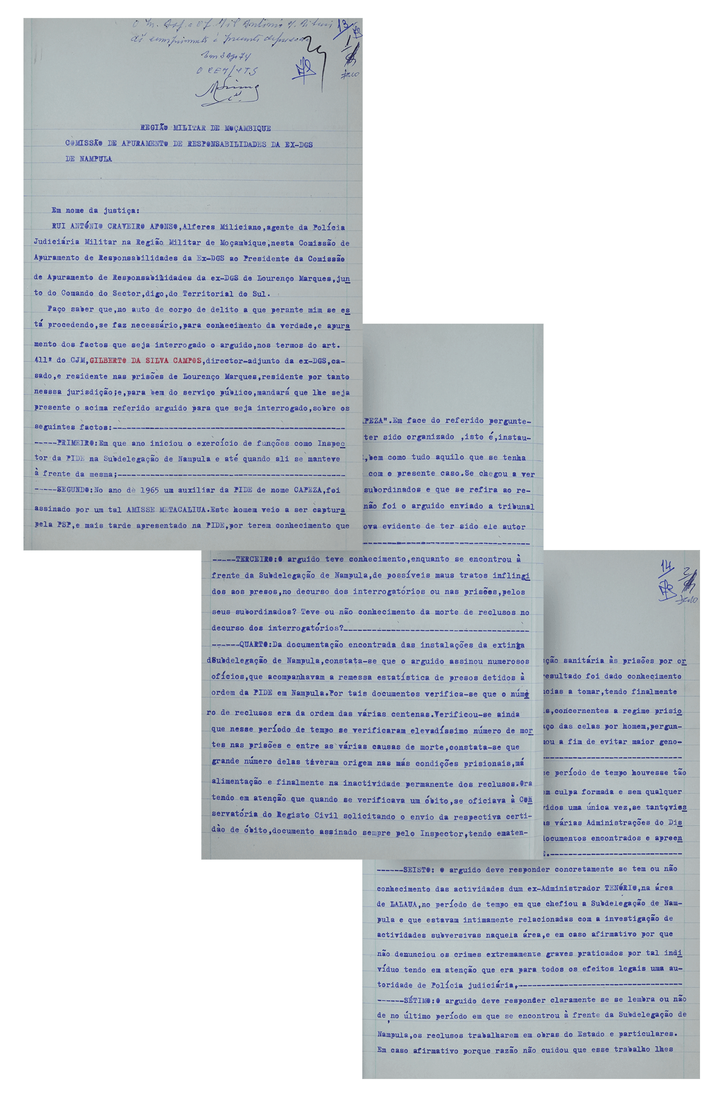 Na análise dos trabalhos feitos pela comissão, divulgados pela primeira vez nesta série do PÚBLICO, nesta capital provincial foram as mais completas: durante as fases de investigação, os militares recorreram a arquivos (da PIDE, do hospital, dos registos civis e da administração colonial), pediram exames médicos e certidões de óbito, interrogaram vítimas, familiares, testemunhas, pides e agentes da PSP. A 5 de Agosto, tinham já reunido tantas provas documentais das atrocidades que perguntaram ao ex-chefe da PIDE em Nampula, Gilberto da Silva Campos, porque é que nada fizera para “evitar maior genocídio”.