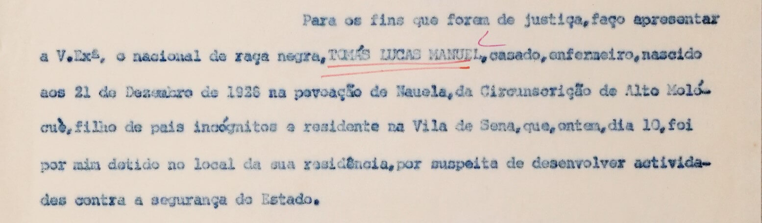 Tomás Lucas Manuel, Mário Jussa Jamal e Fernando Murripa foram detidos em Março de 1964 na circunscrição de Sena, junto ao rio Zambeze, a quase 400 quilómetros a noroeste da Beira. Todos trabalhavam na Companhia Trans Zambézia Railways (como enfermeiro, telegrafista e auxiliar de enfermagem, respectivamente) e nos primeiros ofícios da polícia o agente Virgílio Francisco escreveu que se reuniam regularmente “para tratar de assuntos relacionados com a organização subversiva Frelimo”. Transportados para a Beira, foram encarcerados na cadeia da PSP, nas celas privativas da PIDE, sob regime de isolamento. Nenhum tinha cadastro, comunicou a repartição dos registos e do notariado de Lourenço Marques.